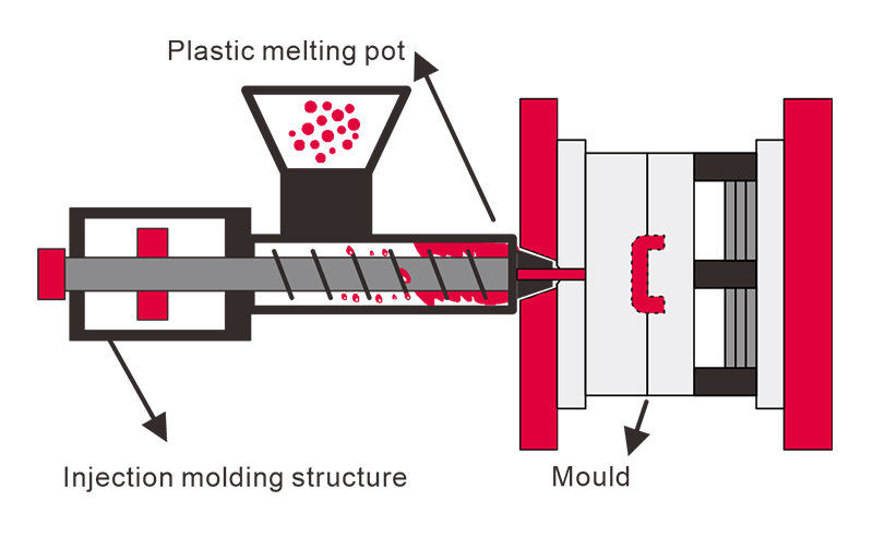 मोल्ड को भरने के लिए प्लास्टिक पिघल को 70-150 एमपीए में बंद मोल्ड गुहा में इंजेक्ट किया जाता है।